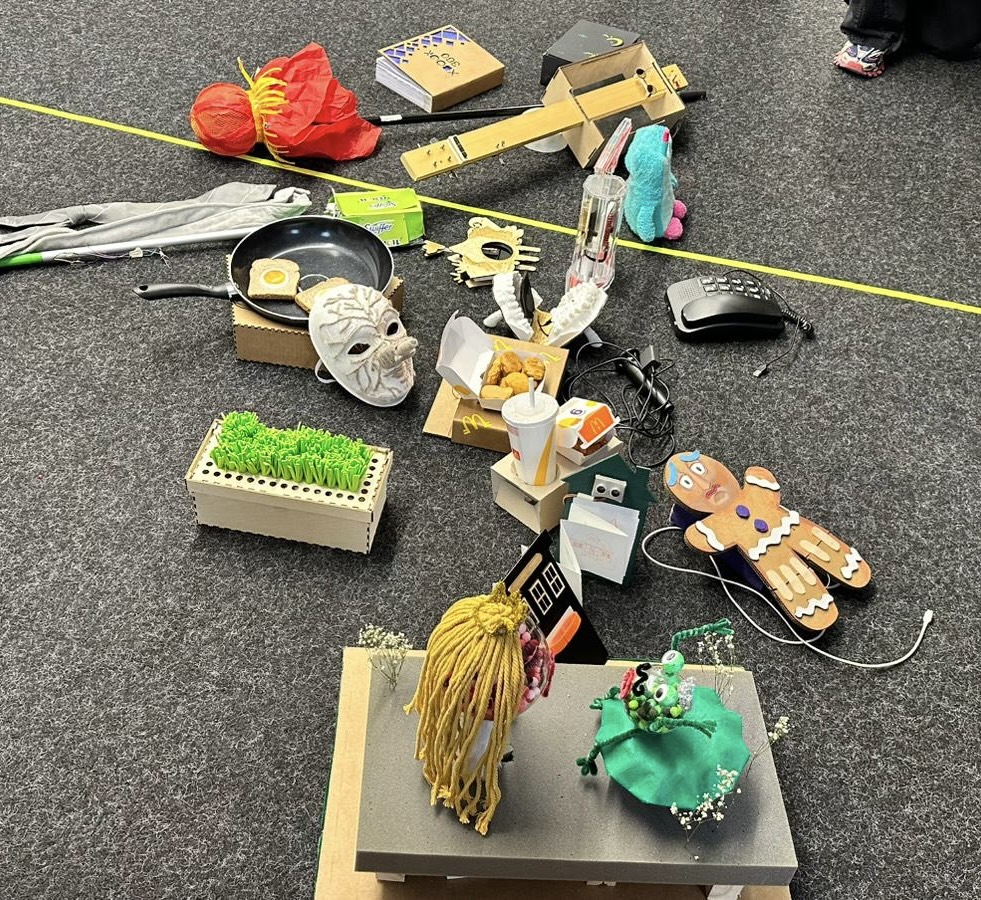 Students created a unique and experimental game controllers to duel in the classic game “Pong”. Each device uses sensors, wireless communication, and physical augmentation to create a customized interaction for its player. From a book, a classic telephone, a pump, chattering teeth, a story and a frying pan, these devices disrupt expectation and bring delight to players and viewers of video games (adapted from creation & computation).